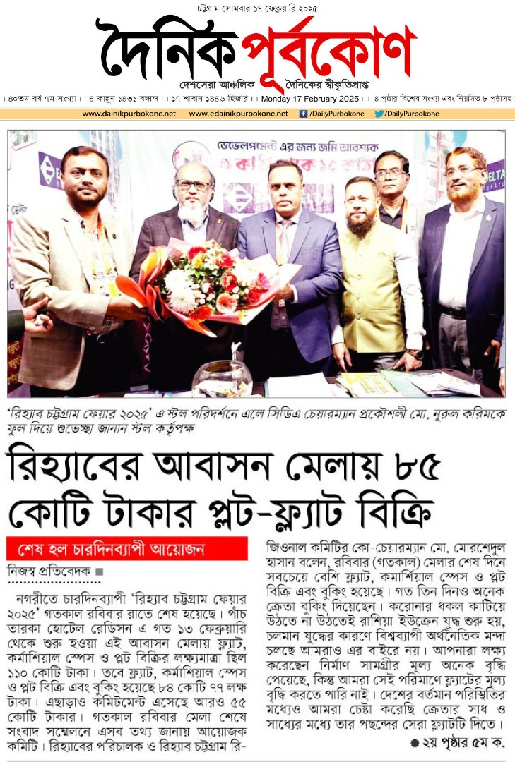 | ১৭-০২-২০২৫ | রিহ্যাবের আবাসন মেলায় ৮৫ কোটি টাকার প্লট - ফ্ল্যাট বিক্রি | দেখুন |