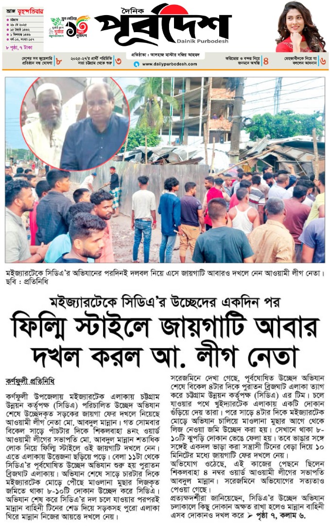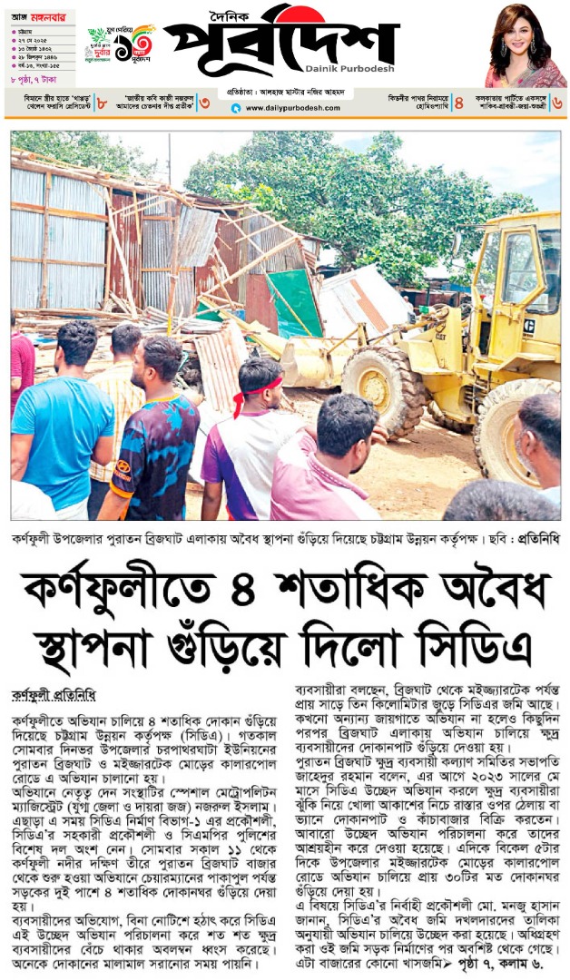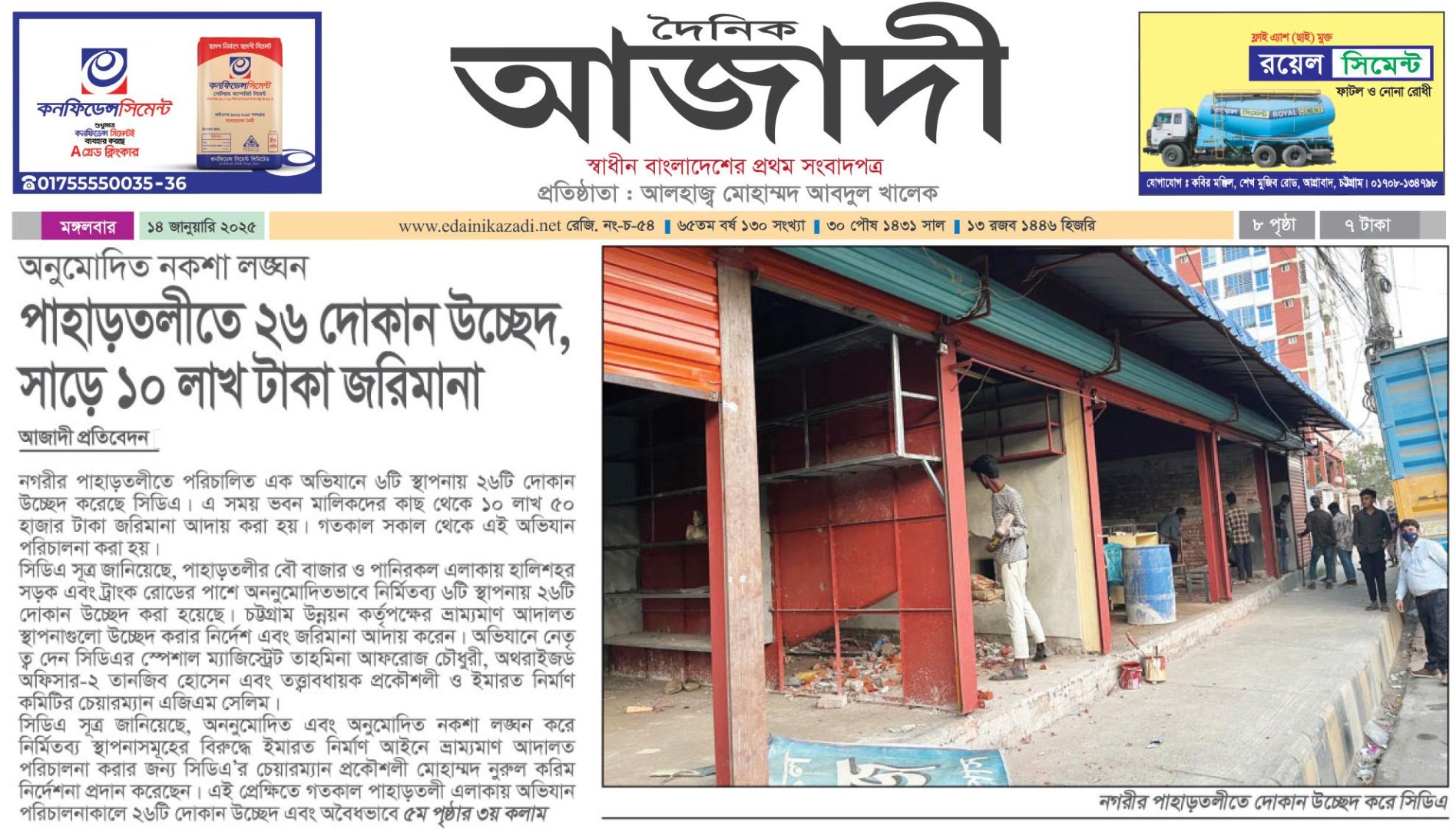 | ১৪-০১-২০২৫ | পাহাড়তলীতে ২৬ দোকান উচ্ছেদ | দেখুন |