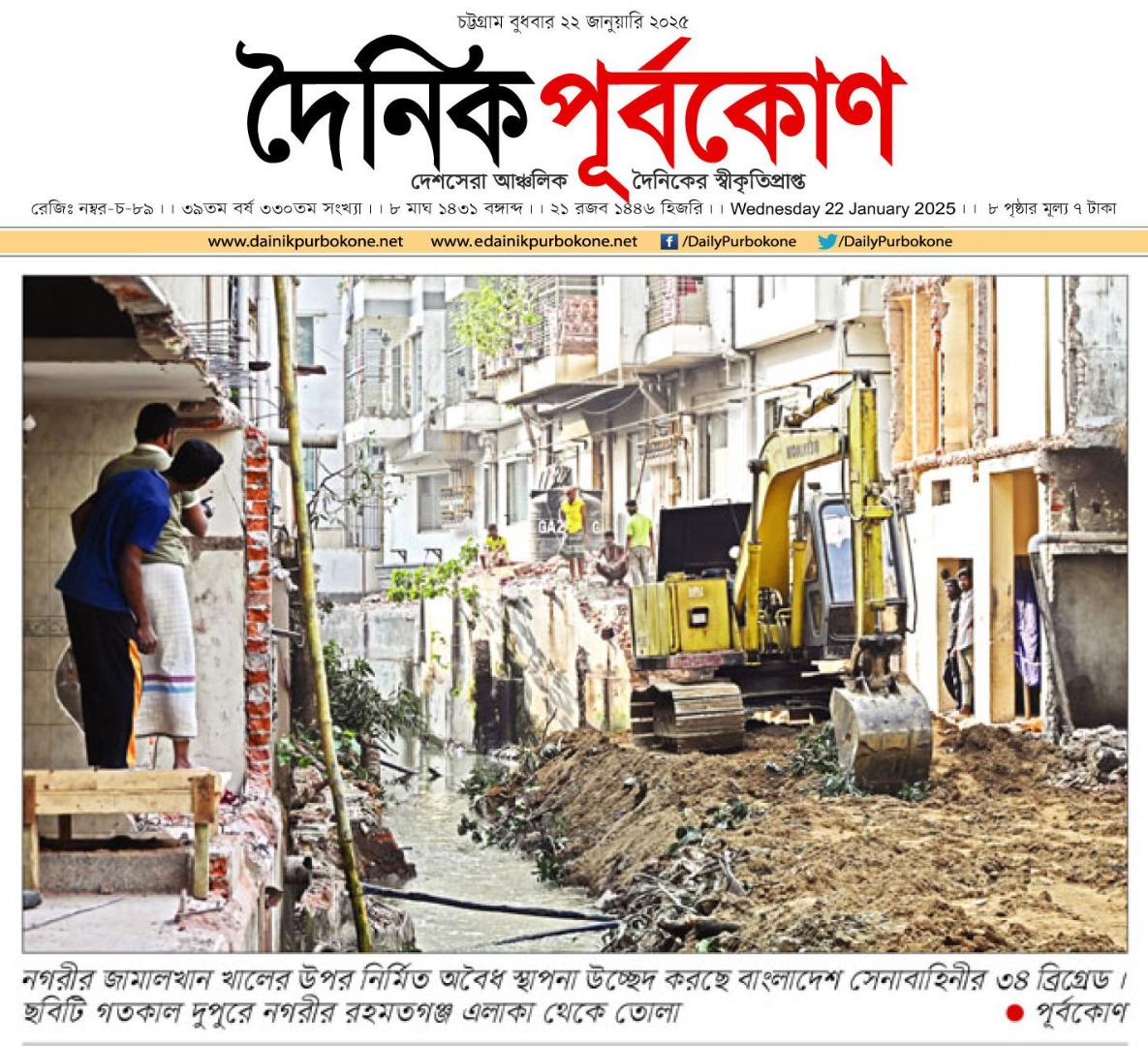 | ২২-০১-২০২৫ | নগরীর জামালখান খালের উপ্র নির্মত অবৈধ স্থাপনা উচ্ছেদ | দেখুন |