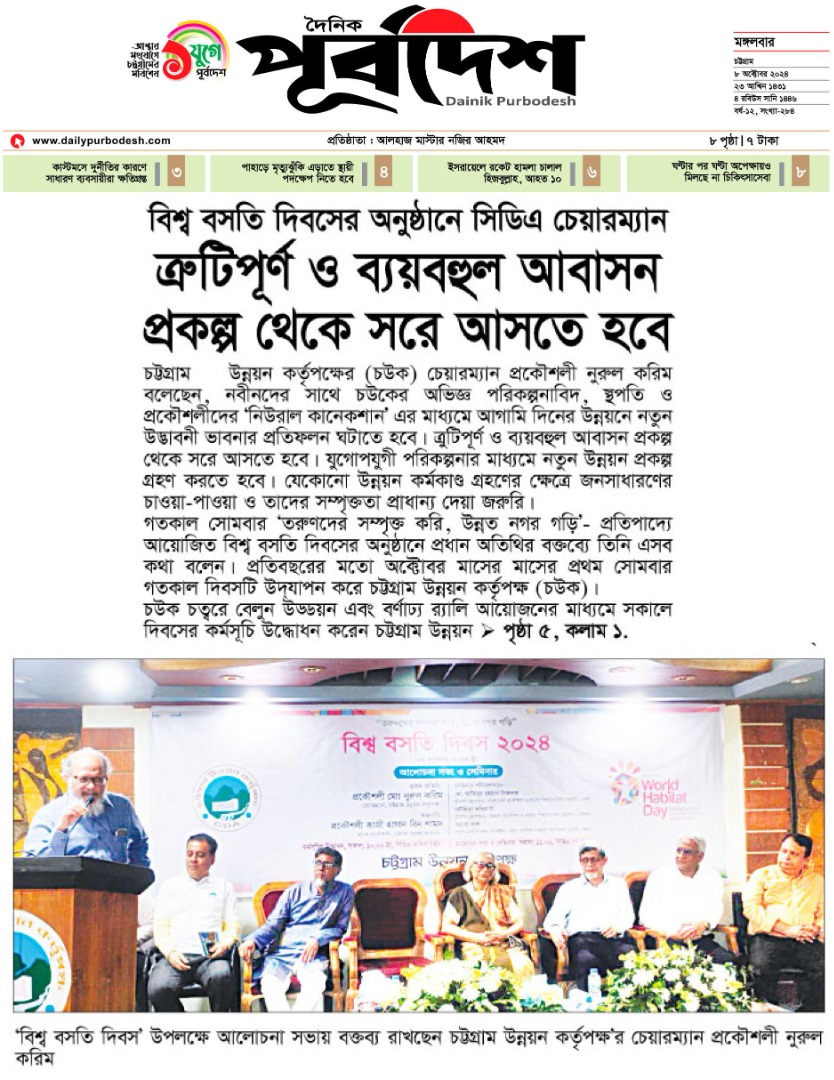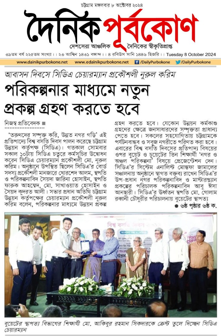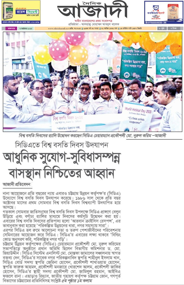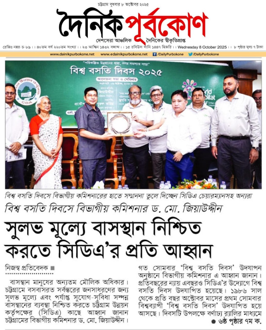 | ০৭-১০-২০২৫ | সিডিএ তে বিশ্ব বসতি দিবস উদযাপন | দেখুন |
