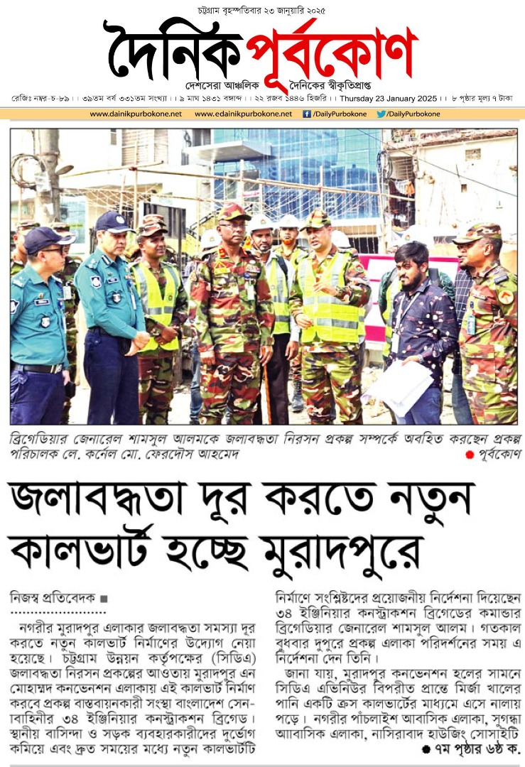 | ২৩-০১-২০২৫ | জলাবদ্ধতা দূর করতে নতুন কাল্ভার্ট হচ্ছে মুরাদপুরে | দেখুন |