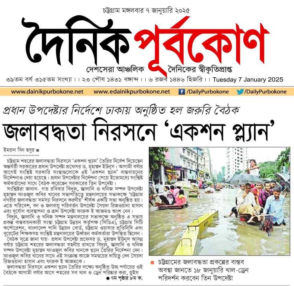 | ০৭-০১-২০২৫ | জলাবদ্ধতা নিরসনে একশন প্ল্যান | দেখুন |