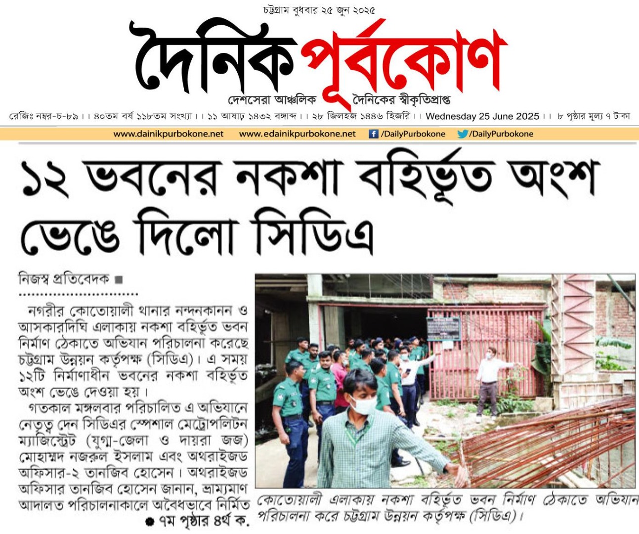 | ২৬-০৬-২০২৫ | ১০টি ভবন সিডিএ অভিযান | দেখুন |