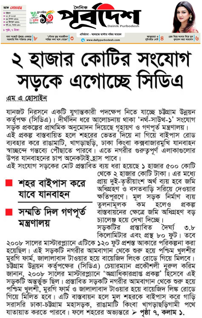 | ১২-০৫-২০২৫ | দুই হাজার কোটির সংযোগ সড়কে এগোচ্ছে সিডিএ | দেখুন |