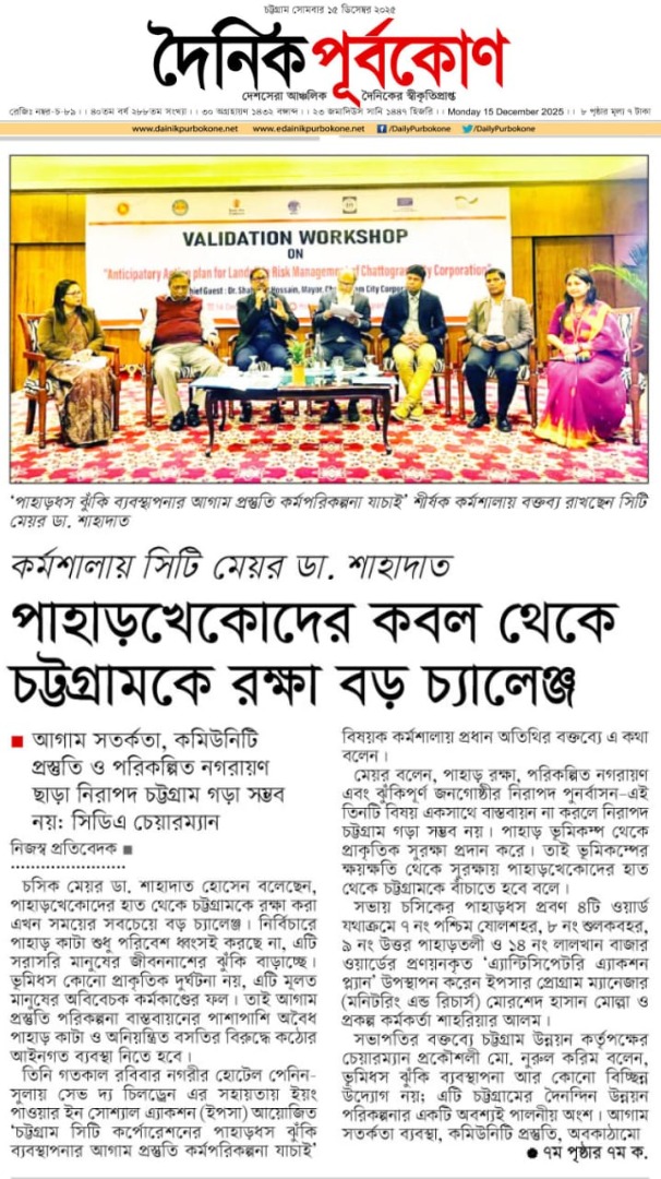 | ১৫-১২-২০২৫ | পাহাড়ধস ঝুকি ব্যবস্থাপনায় আগাম প্রস্তুতি কর্মপরিকল্পনা যাচাই | দেখুন |