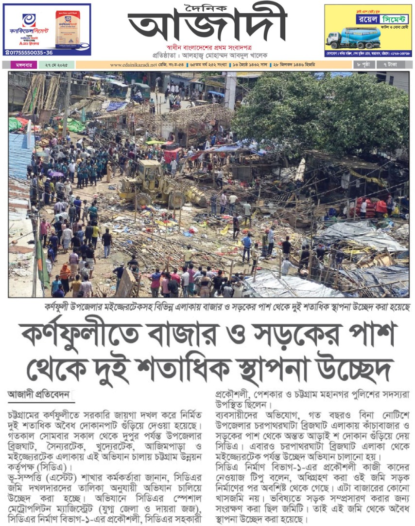 | কর্ণফুলীর পুরাতন ব্রিজঘাট এলাকায় সিডিএর উচ্ছেদ অভিযান। | ডাউনলোড | |